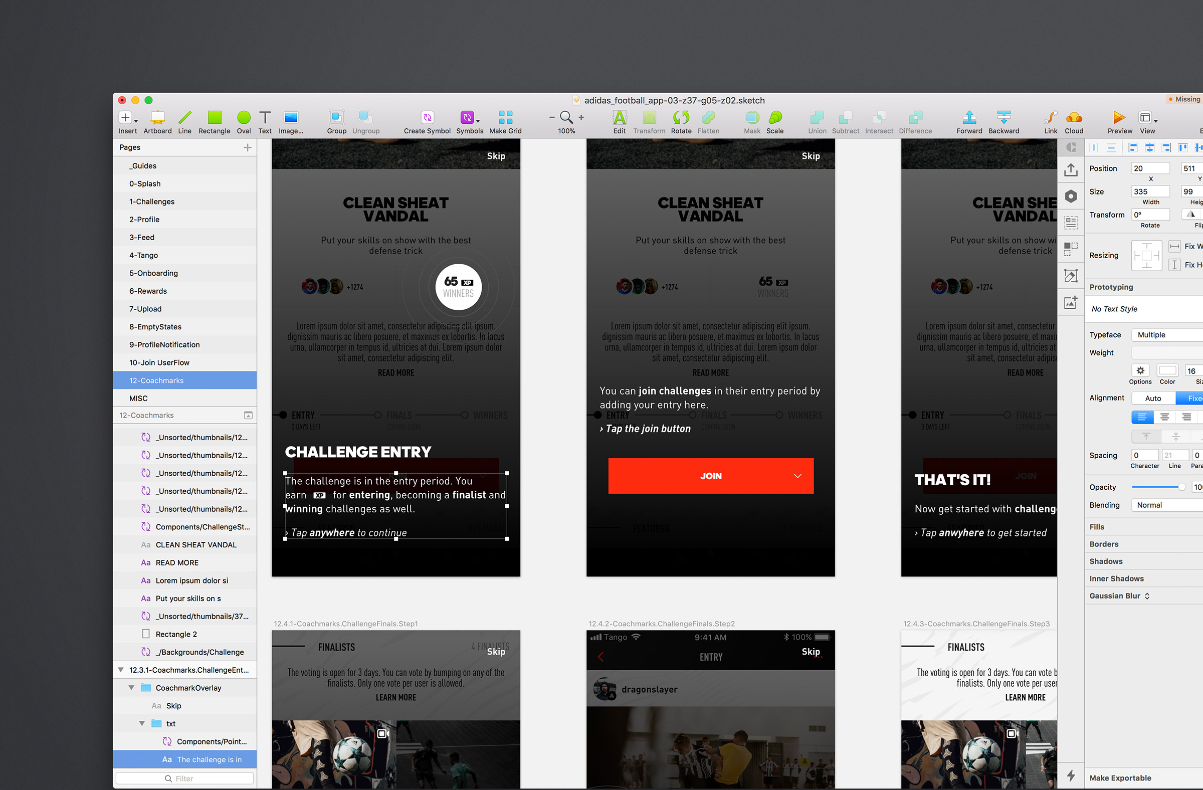 I led the product design team for flagship sports app created for adidas global, launched in 5 international markets on iOS & Android. Responsibilites included the design of the core experience, establishing collaboration and delivery principles for designers and engineers and defining overall style and aesthetics. After laying down the foundations during the concepting phase with flows and wireframes, we defined the complete user journey and visual identity of the product with prototypes, a styleguide and motion specs as well.