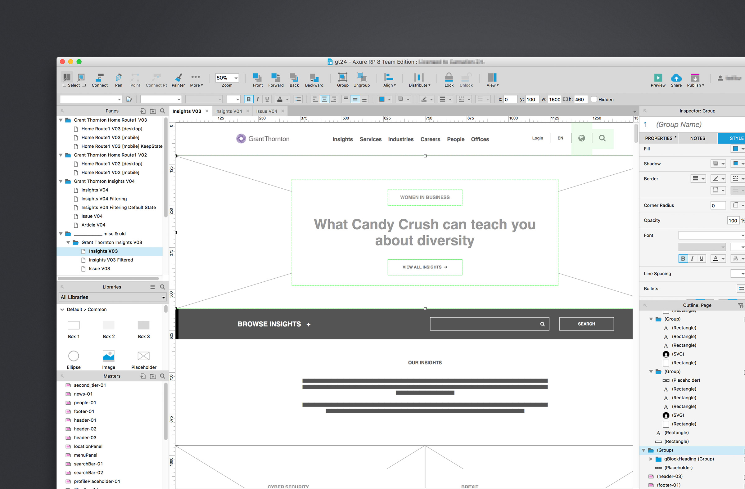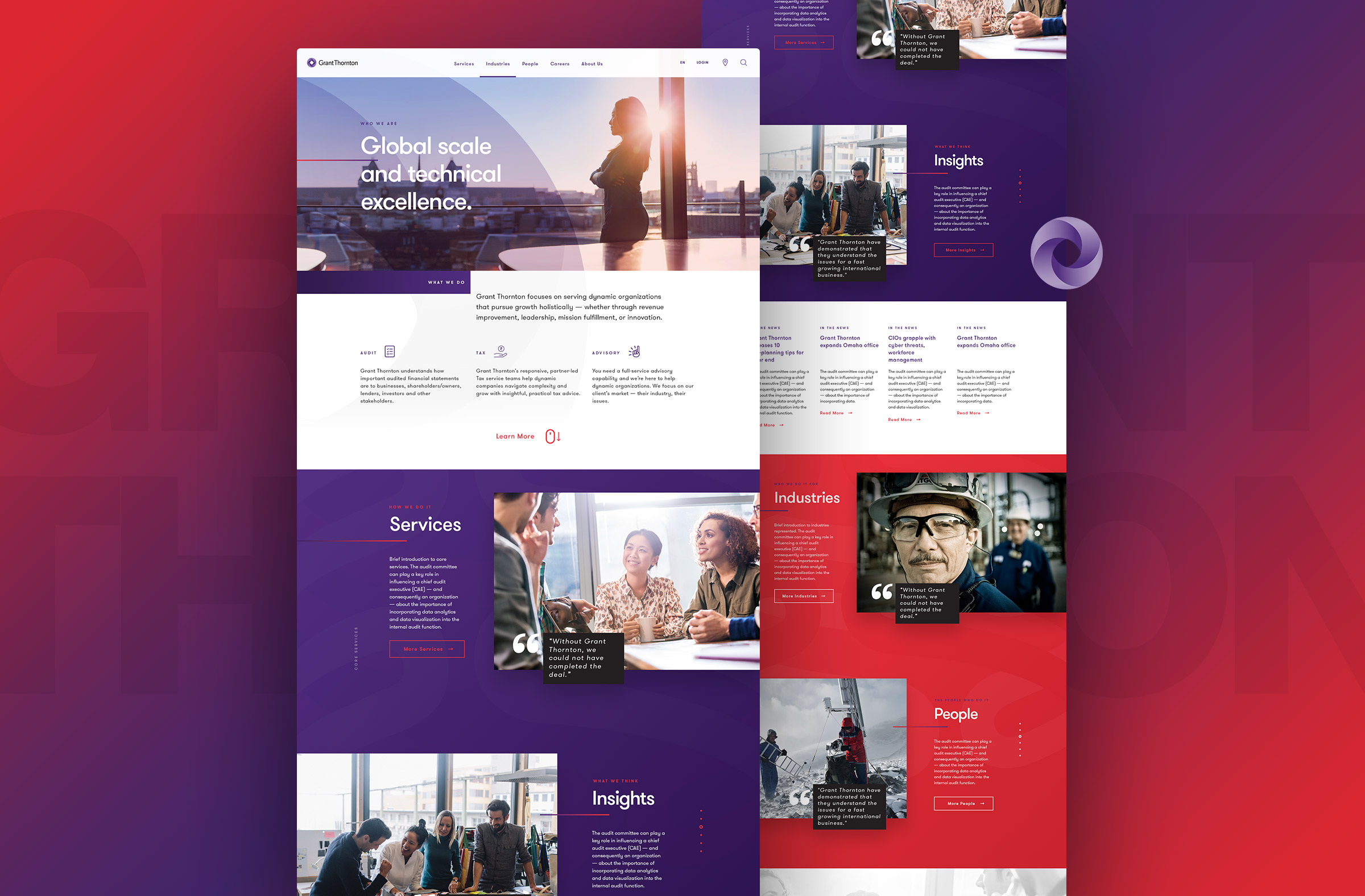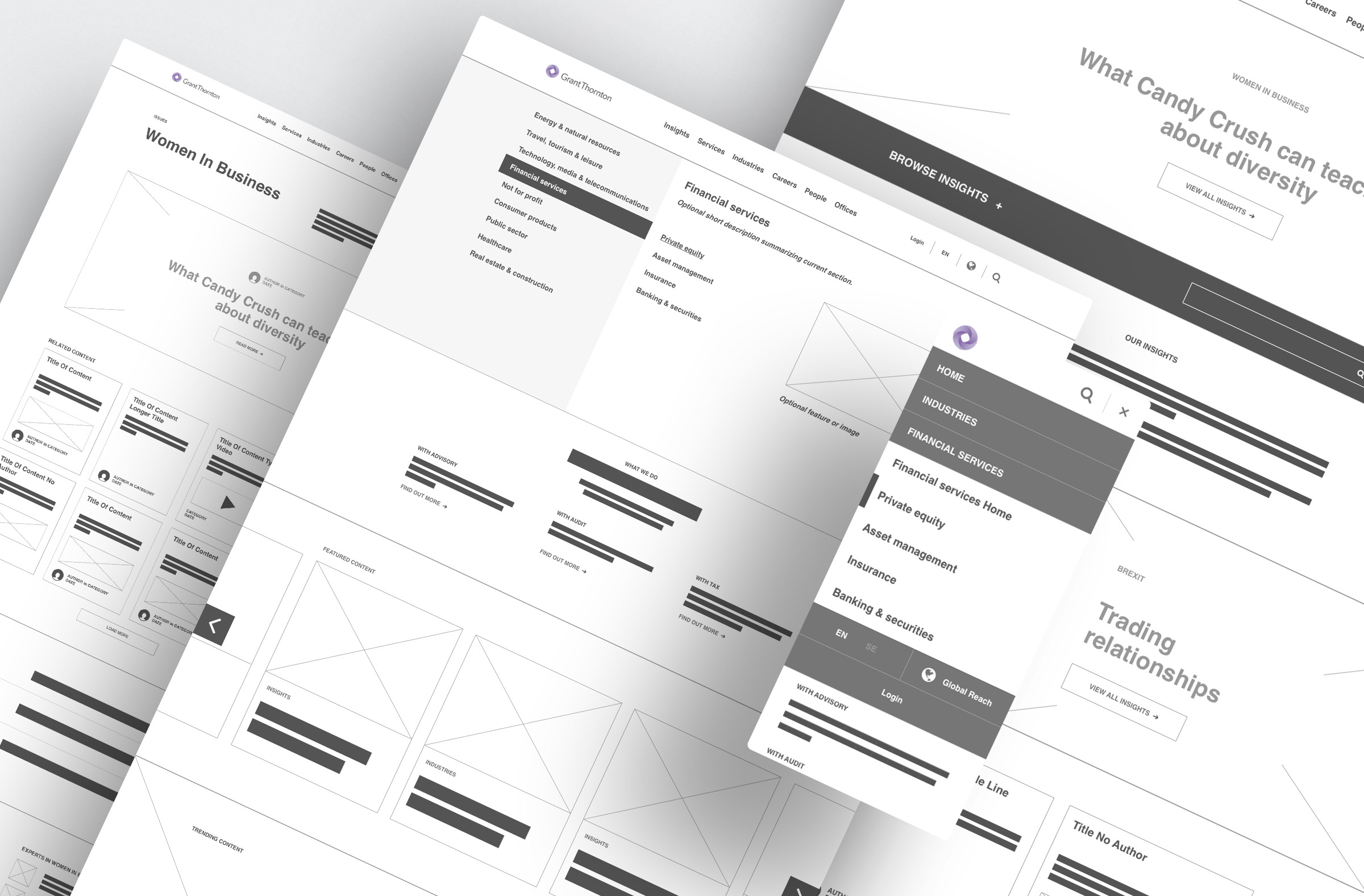 Grant Thornton is one of the largest accounting and consulting services networks. The goal of this project was to redefine the frontpage and navigation of the global GT site network and to establish Grant Thornton as a thought leader in the industry. After iterations of hand-drawn sketches, wireframes and high-definition prototypes, we dived straight into user-testing with real clients of the company. After gathering valuable insights from the sessions, we fine-tuned our prototypes and created the complete UX & UI designs and guidelines for implementing the redesign.
