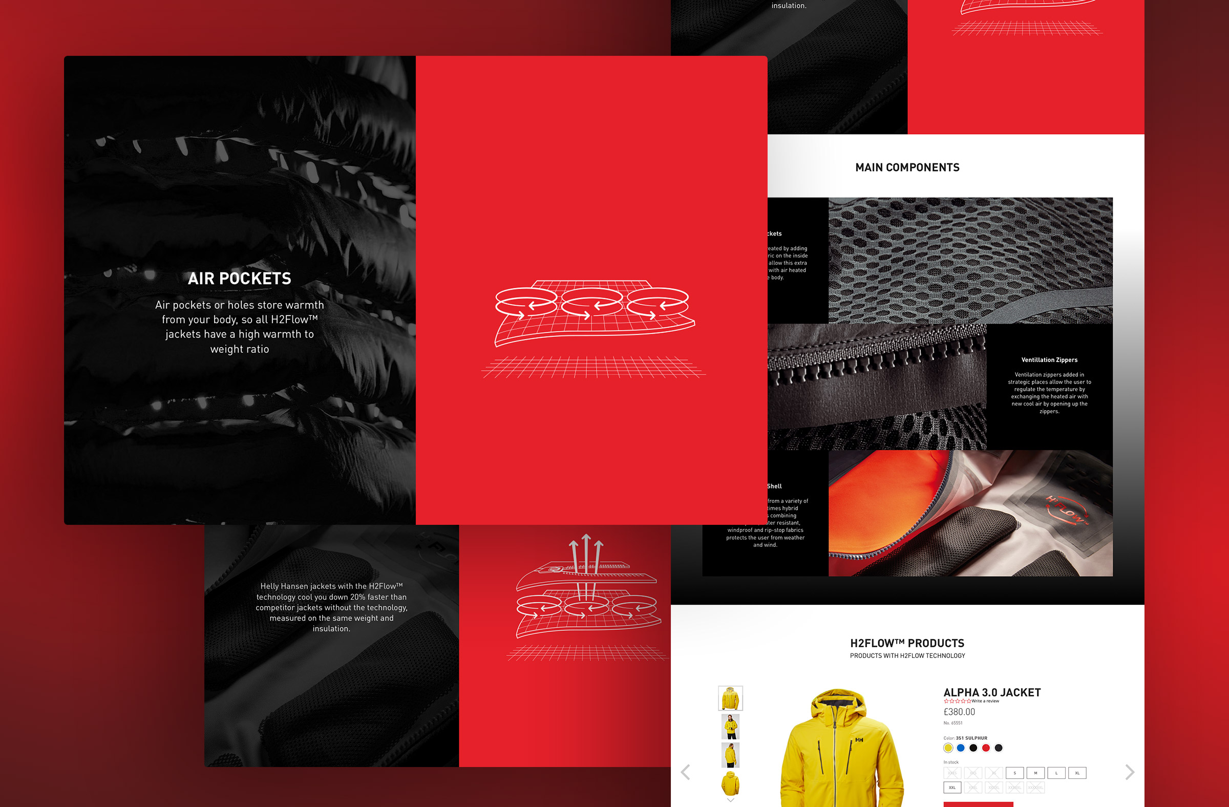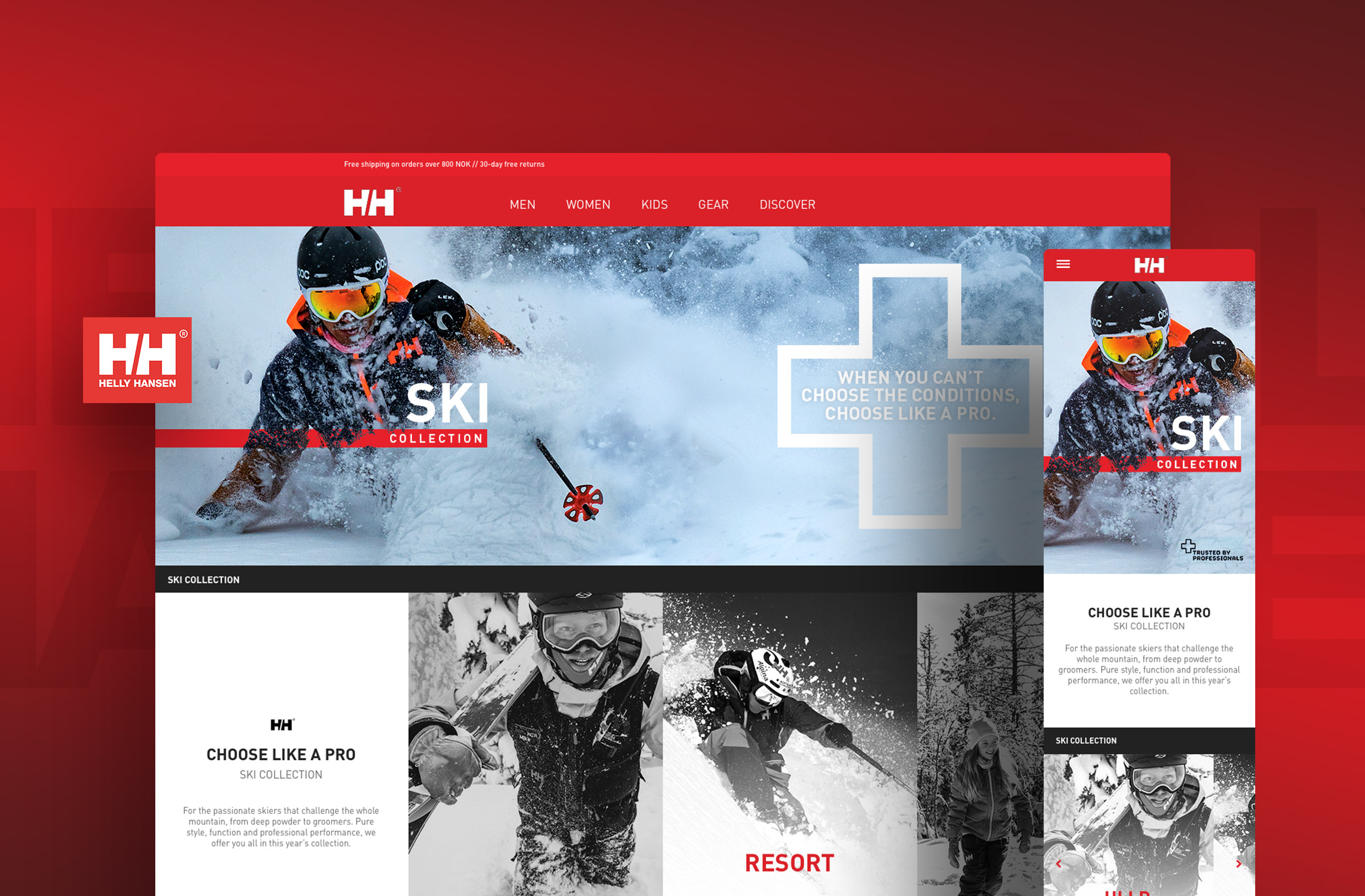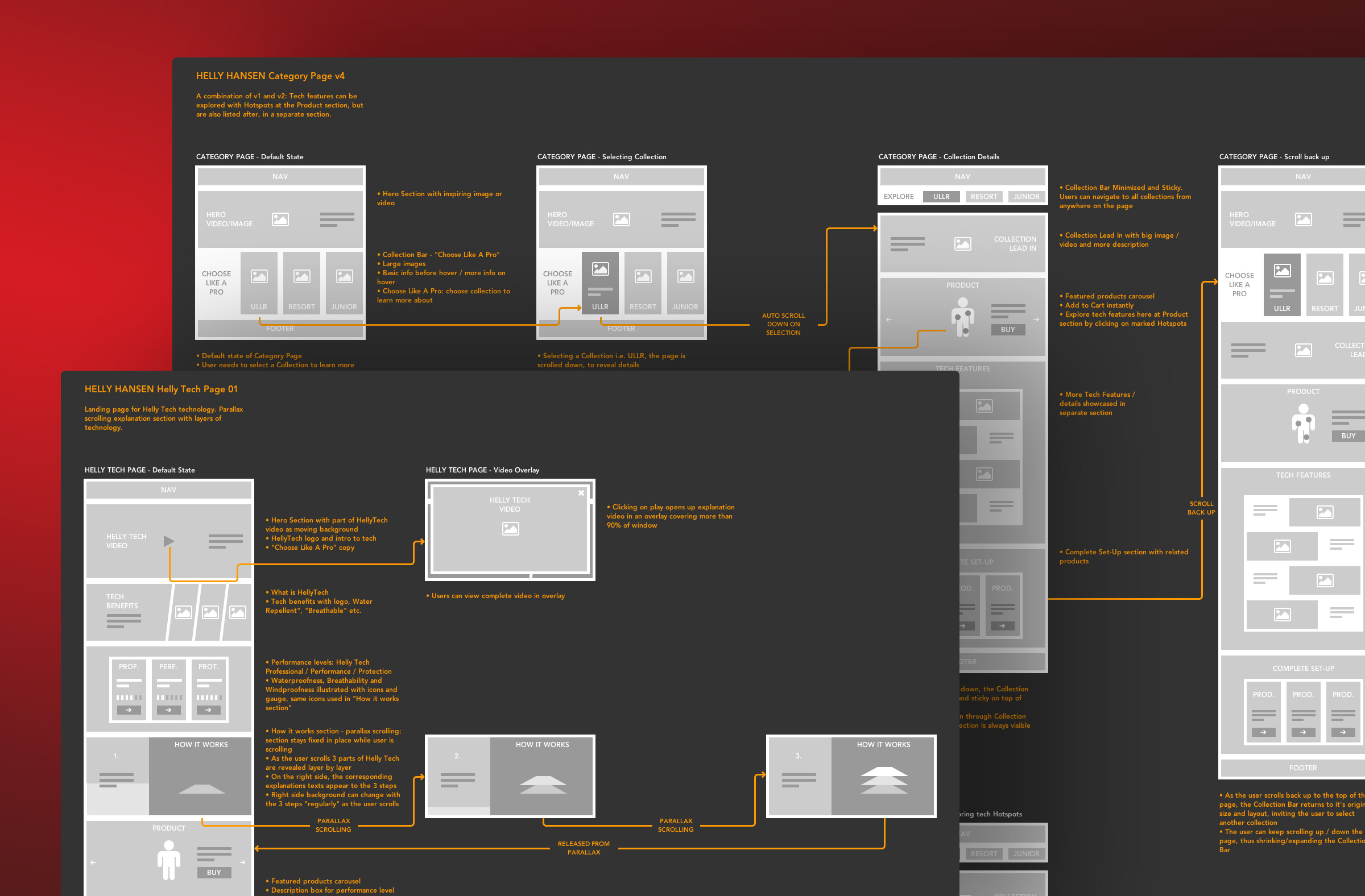 Design project for the sports brand Helly Hansen. The goal was to redefine several parts of hellyhansen.com and re-establish Helly Hansen as an innovative leader in technology. After researching the market and leading examples in the industry, I created base wireframes, user flows and hi-definition prototypes for several winter campaign pages. I gave solutions for sub-section navigation and campaign integrations to better serve visiting users and created innovative interaction solutions that challenged the status quo of retail web experiences of the time.