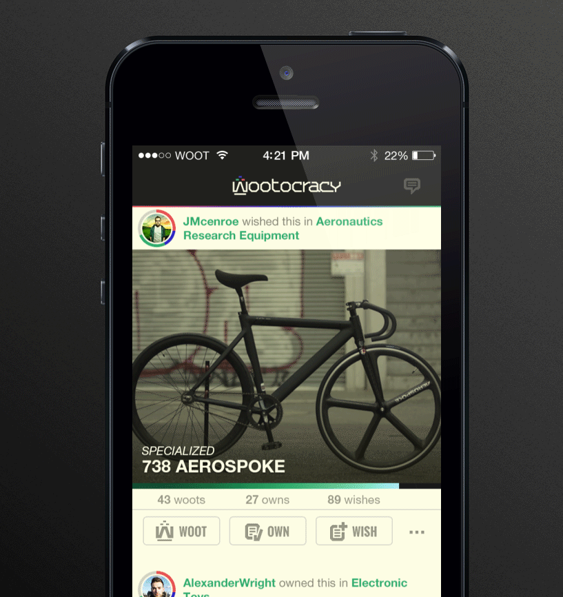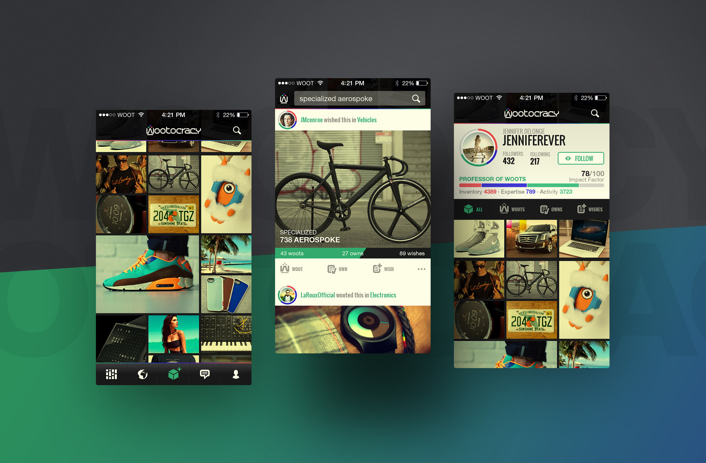 Wootocracy is the social network for products. I worked on this project at POSSIBLE's Innovation Lab creating UI designs and various visuals for Wootocracy. I also created designs and interactive prototypes for a mobile app for the platform.